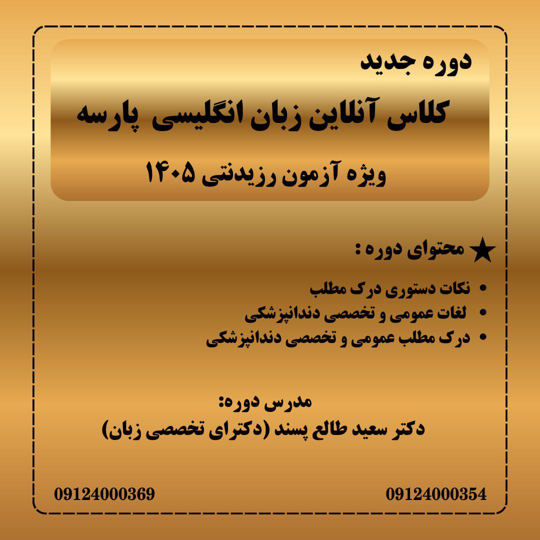 دوره جدید آنلاین درس زبان انگلیسی پارسه ویژه آزمون رزیدنتی دندانپزشکی ۱۴۰۵